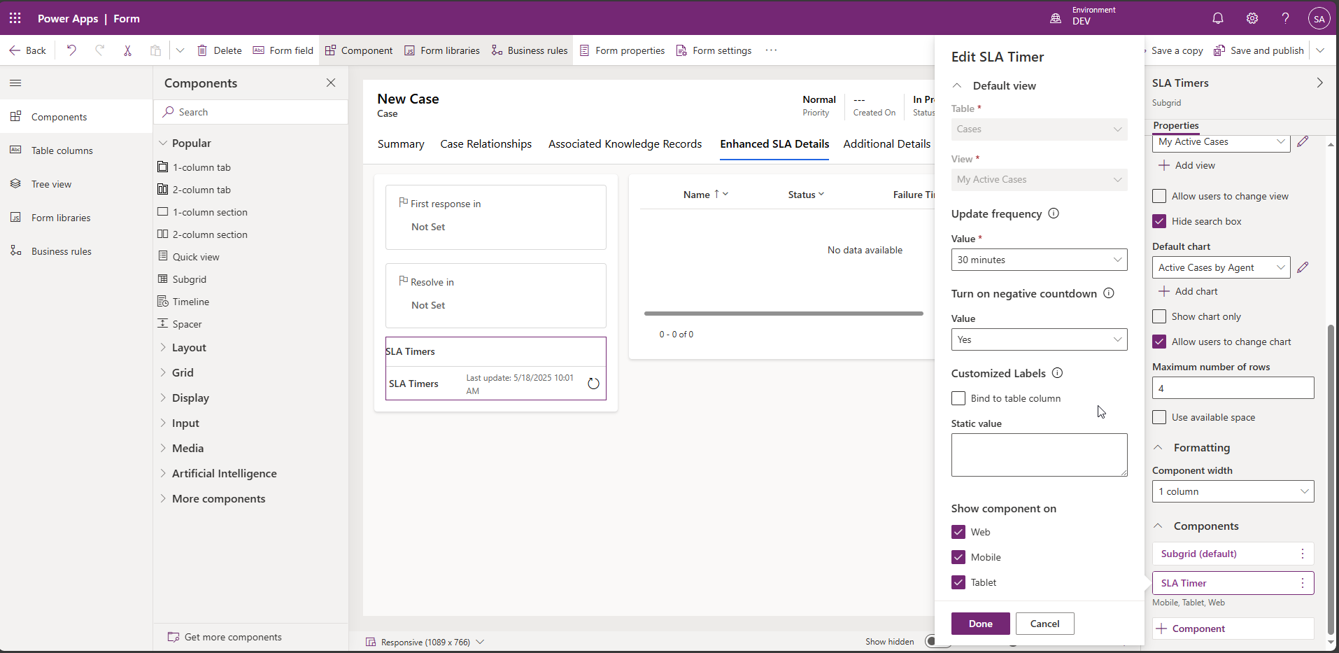 Add an SLA Timer to the Case Form