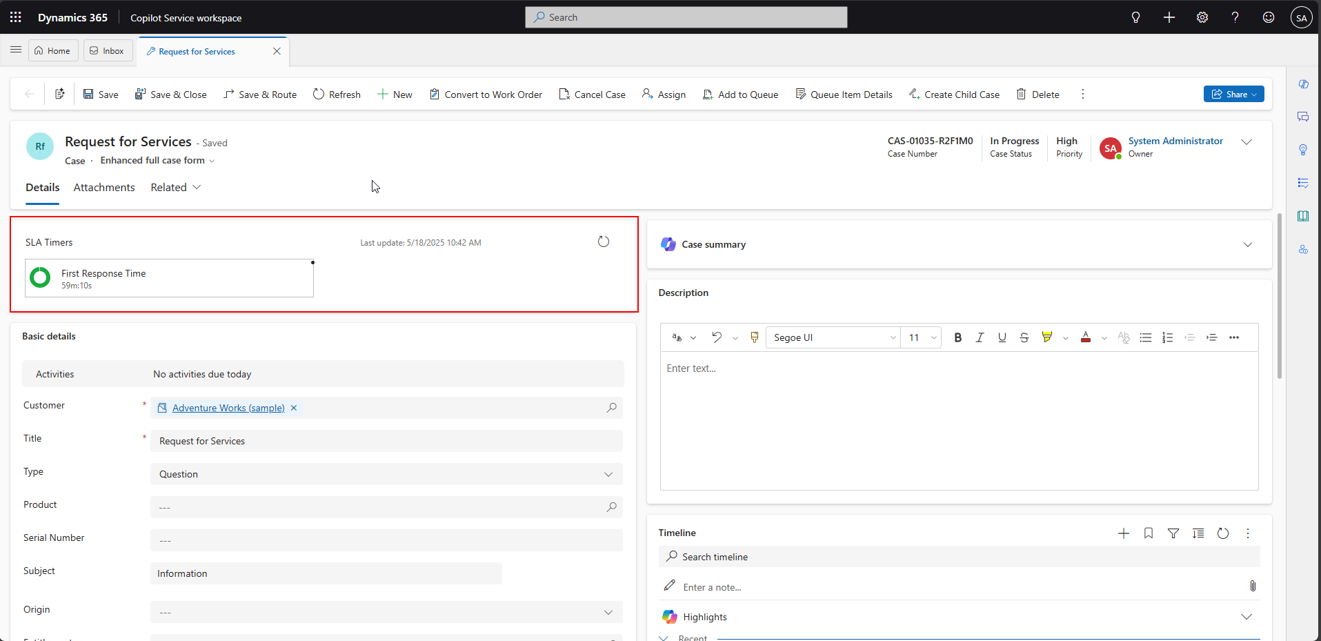 Monitor SLA Performance: Use views in Copilot Service Workspace or create custom reports to track SLA compliance